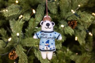 Felt Polar Bear Christmas Jumper Tree Decoration