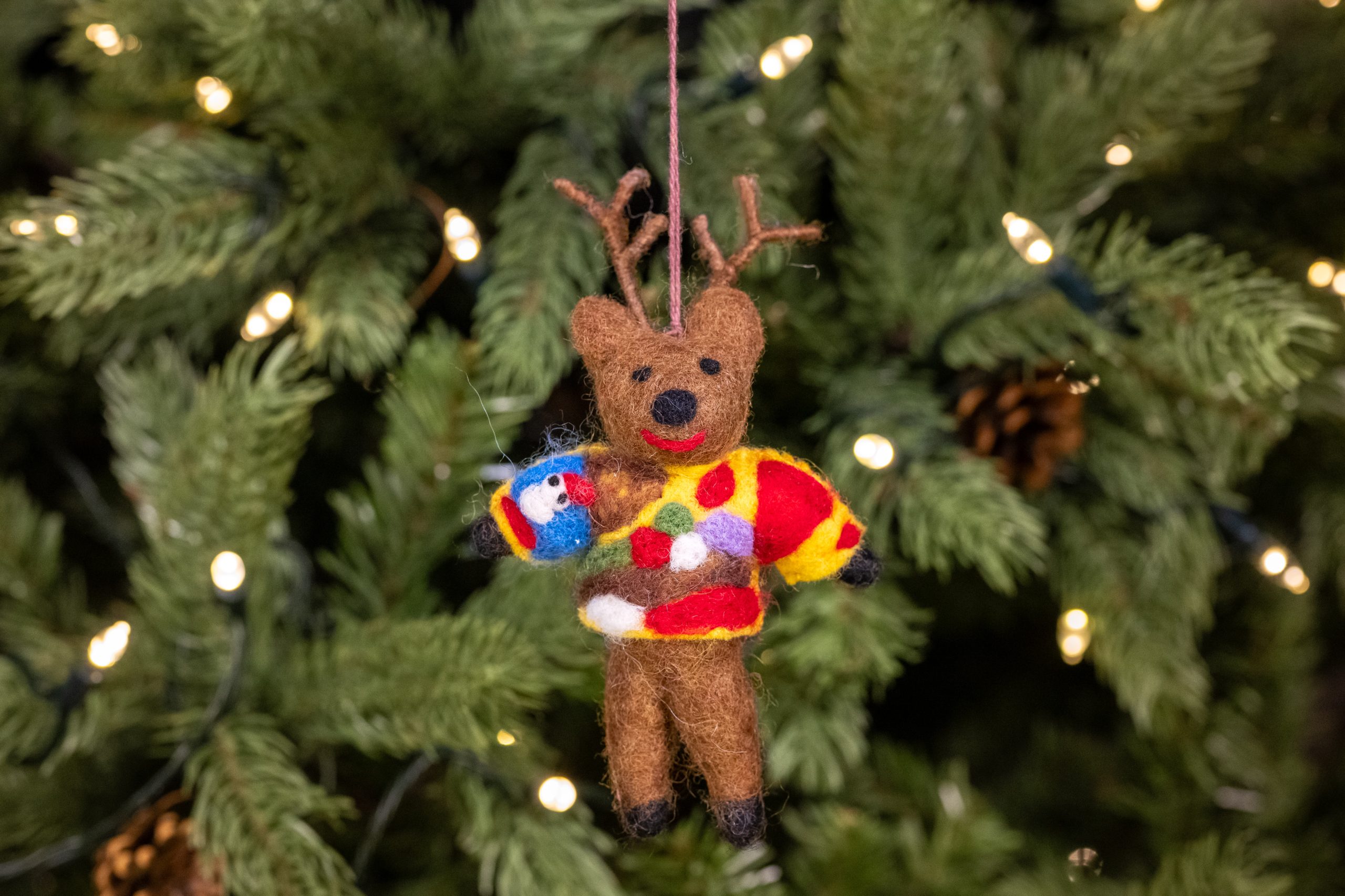 This cool felt reindeer decoration is ready to sleigh the holiday season with style in his colourful jumper, which was designed by Lucy at her local community centre in Greater Manchester.