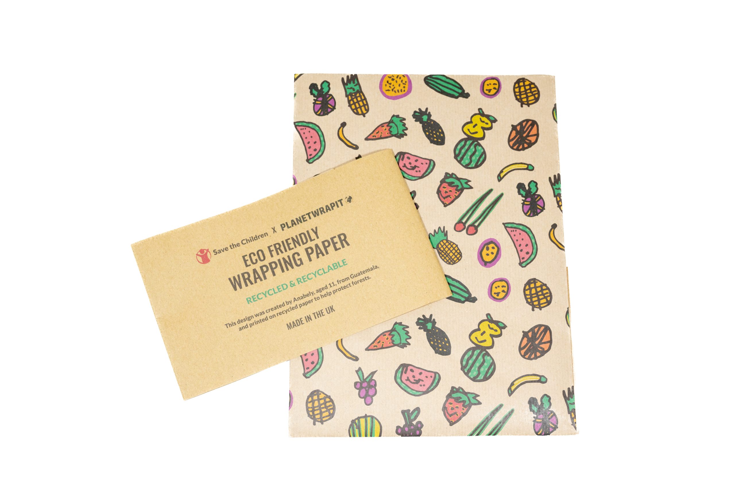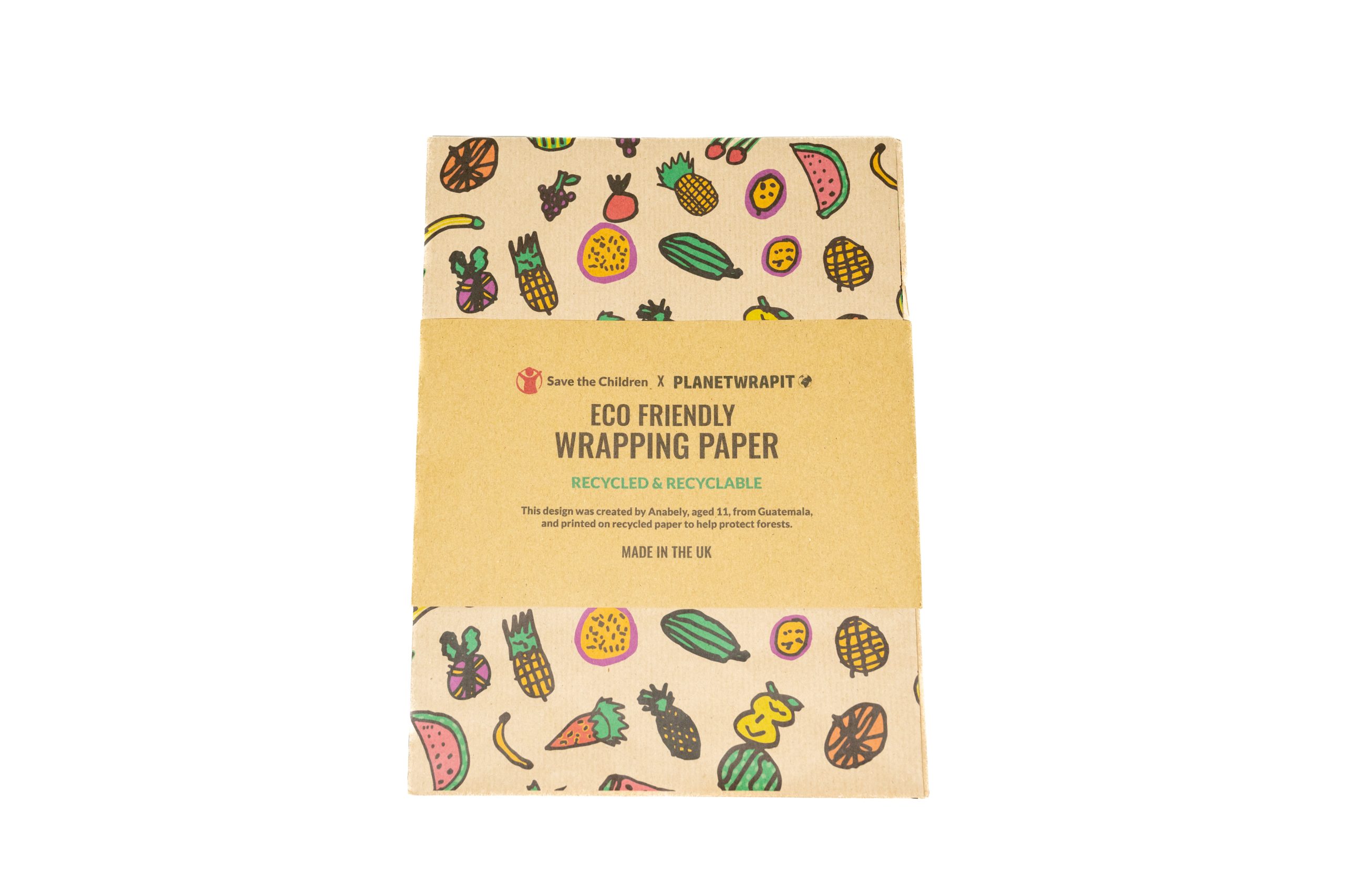 Be prepared for any occasion with this gift wrap sheet in an exclusive Save the Children design and made using recycled kraft paper.