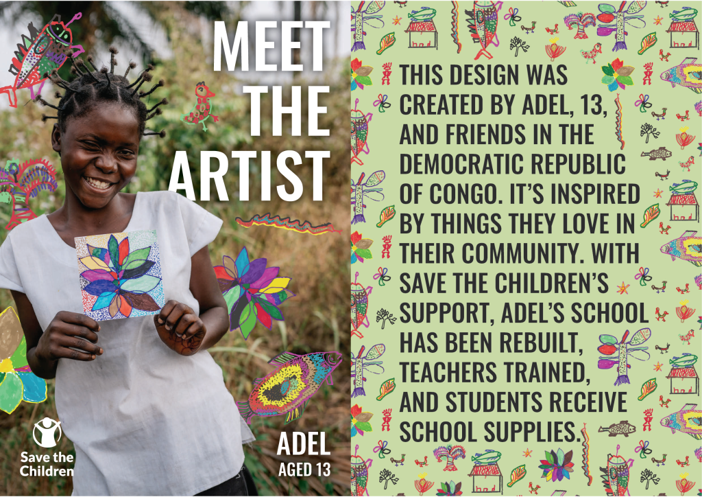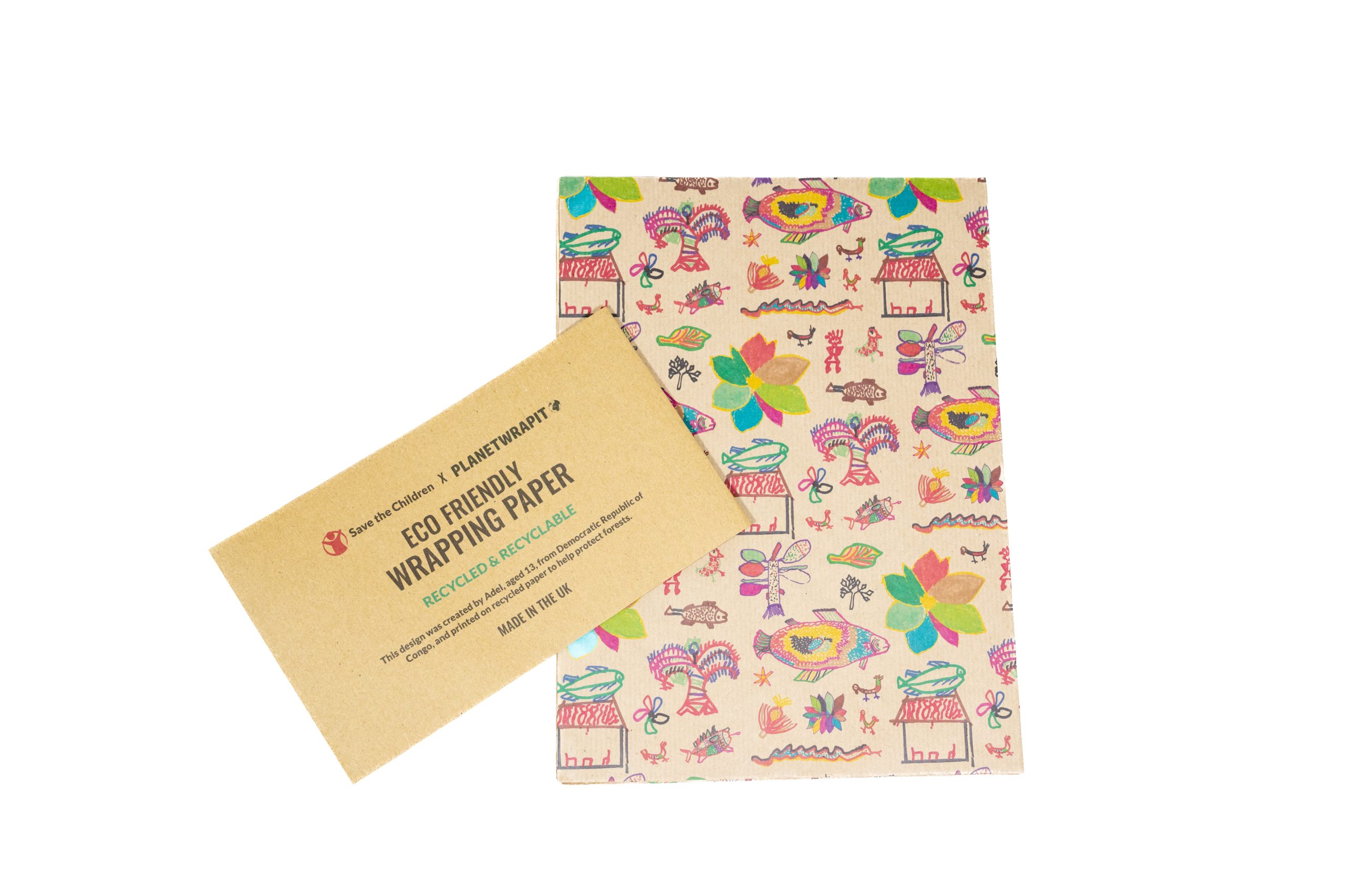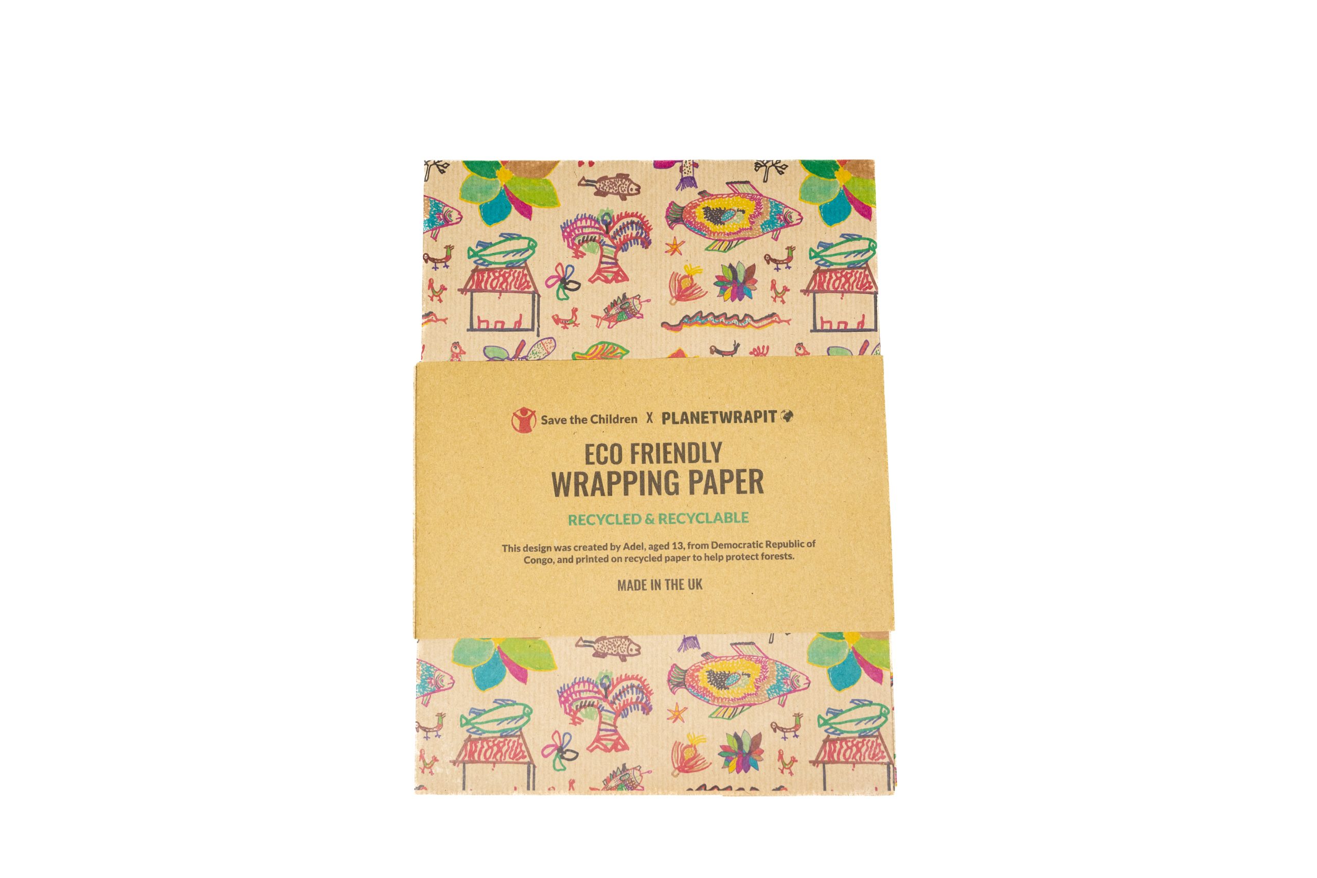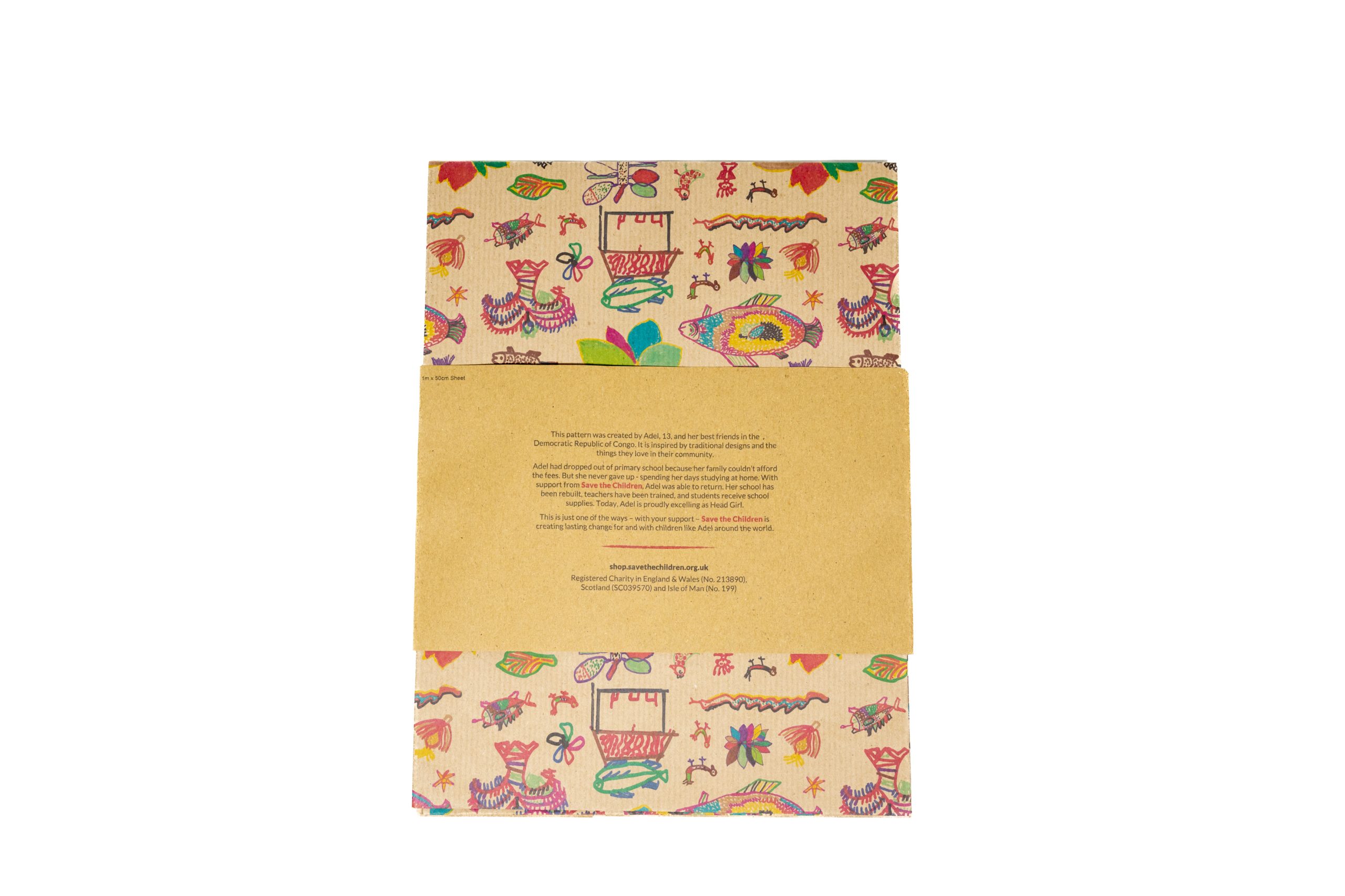 Be prepared for any occasion with this gift wrap sheet in an exclusive Save the Children design and made using recycled kraft paper.