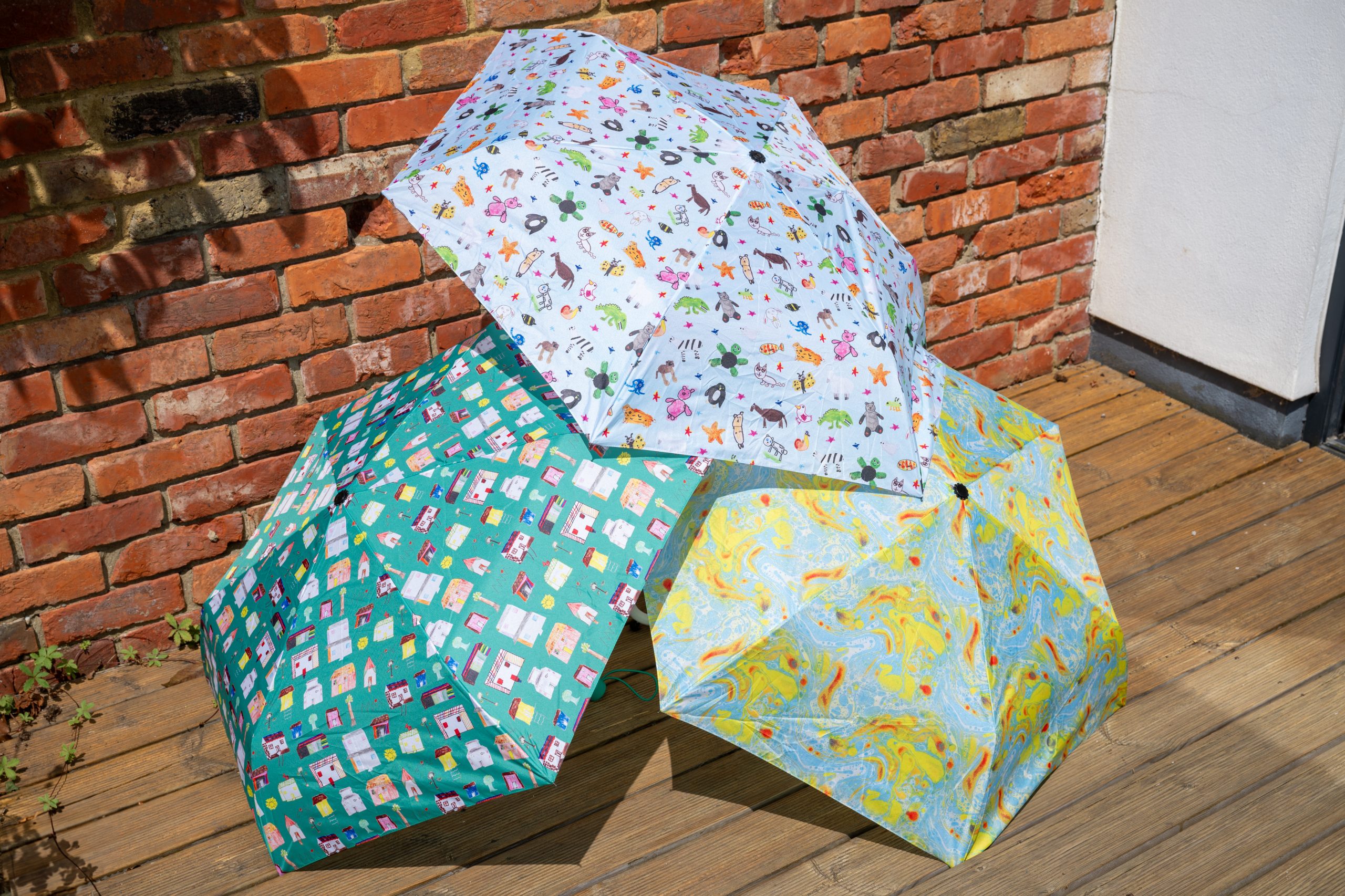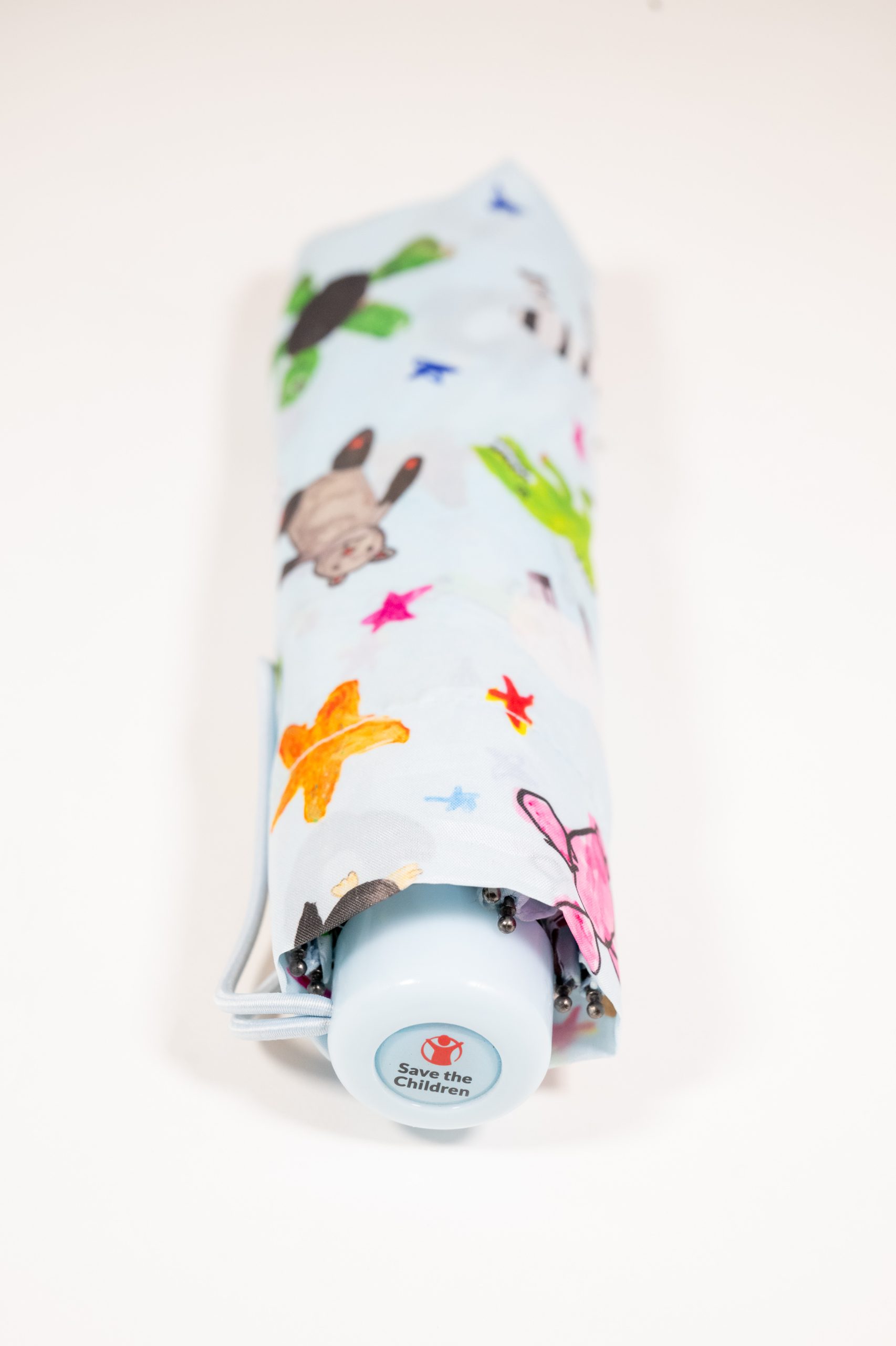 Manual umbrella that folds down to Xcm making it convenient for everyday handbag use. The canopy fabric is made from recycled plastic bottles.
