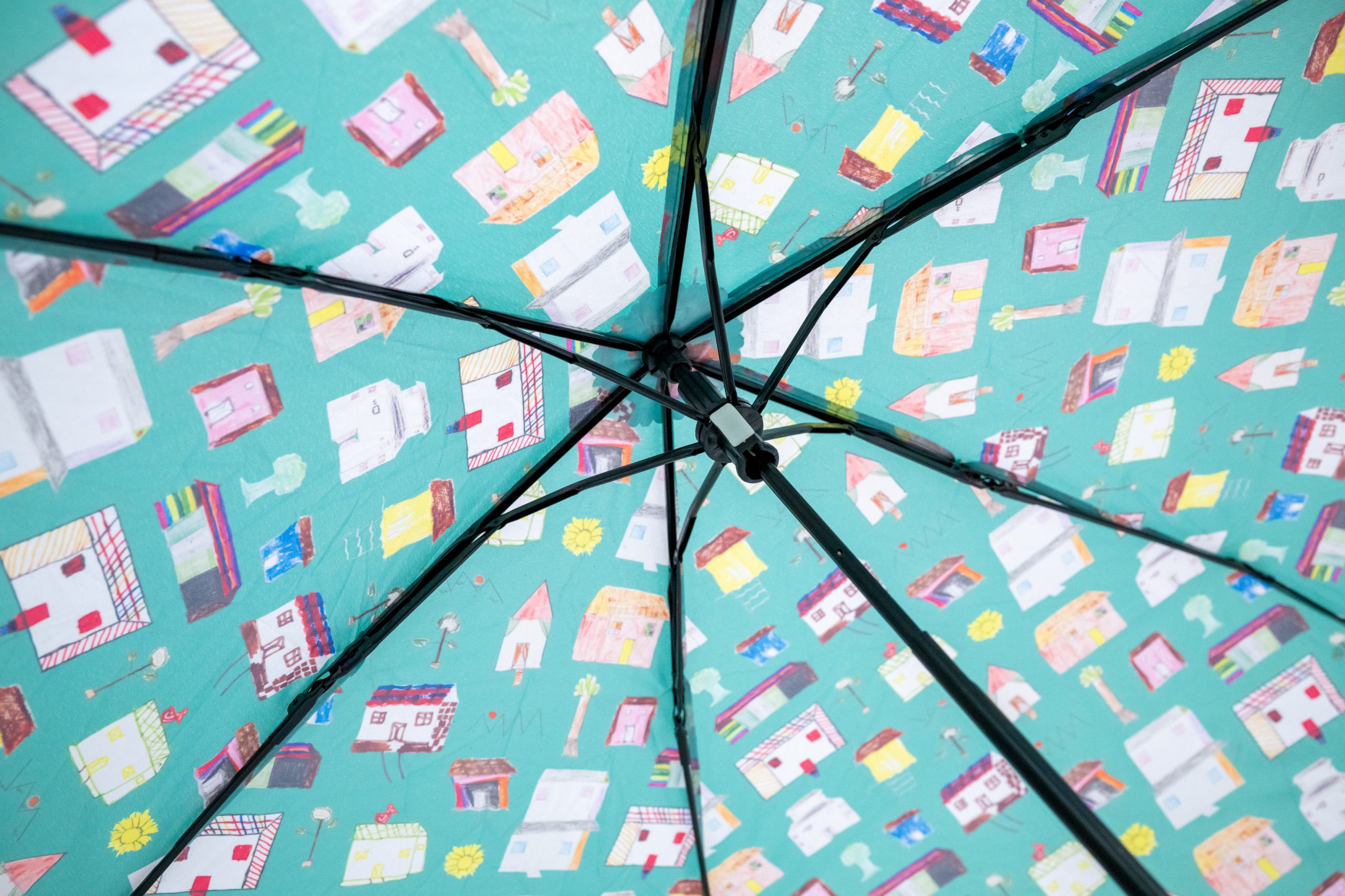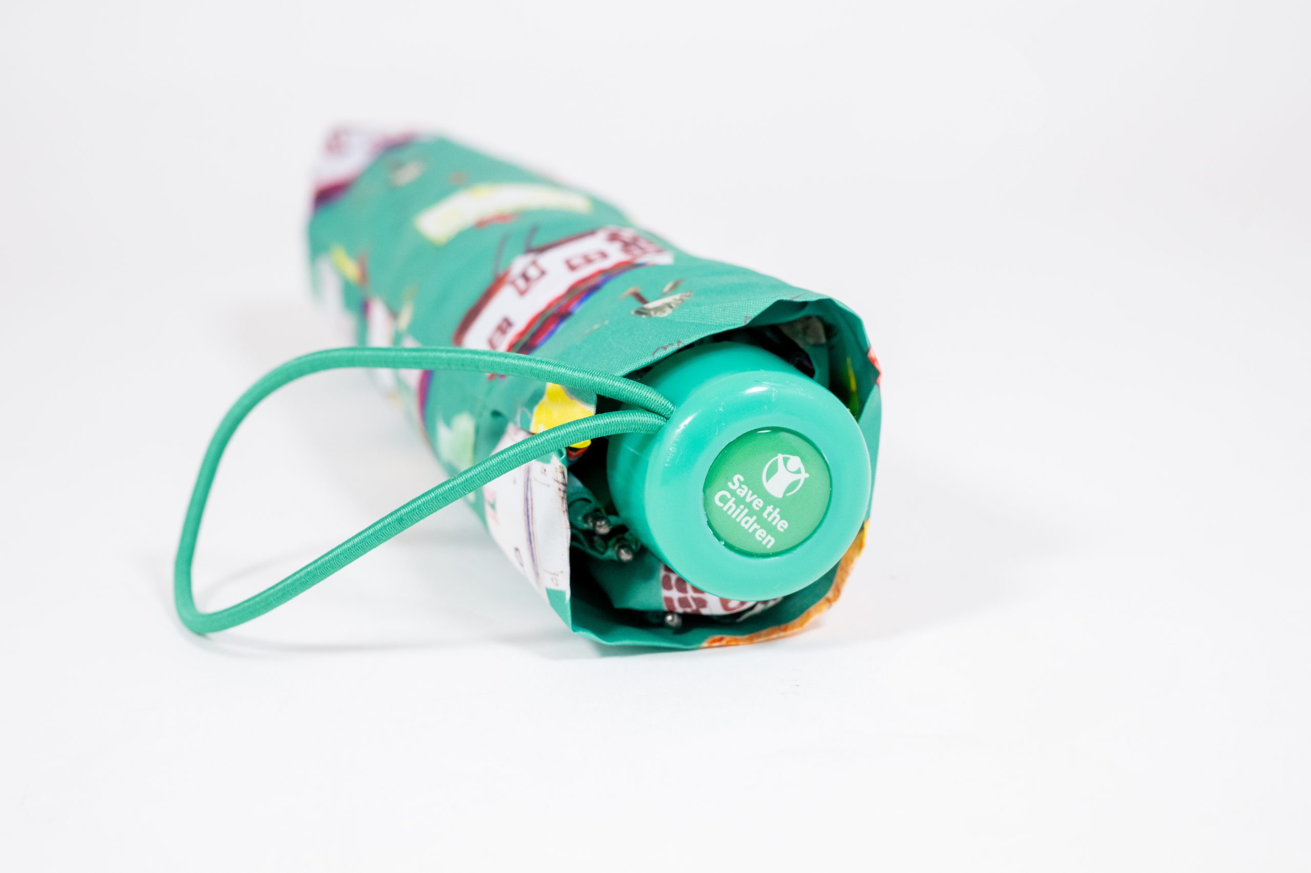 Manual umbrella that folds down to Xcm making it convenient for everyday handbag use. The canopy fabric is made from recycled plastic bottles.